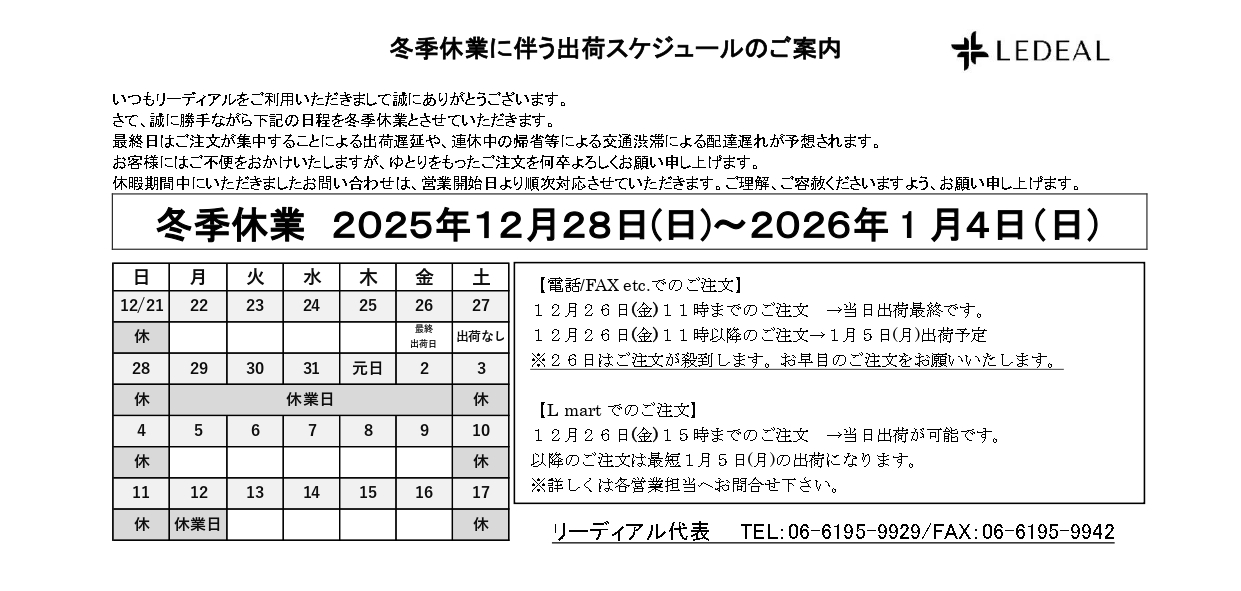 ・12月26日(金)11時までのご注文 →当日出荷最終です。
