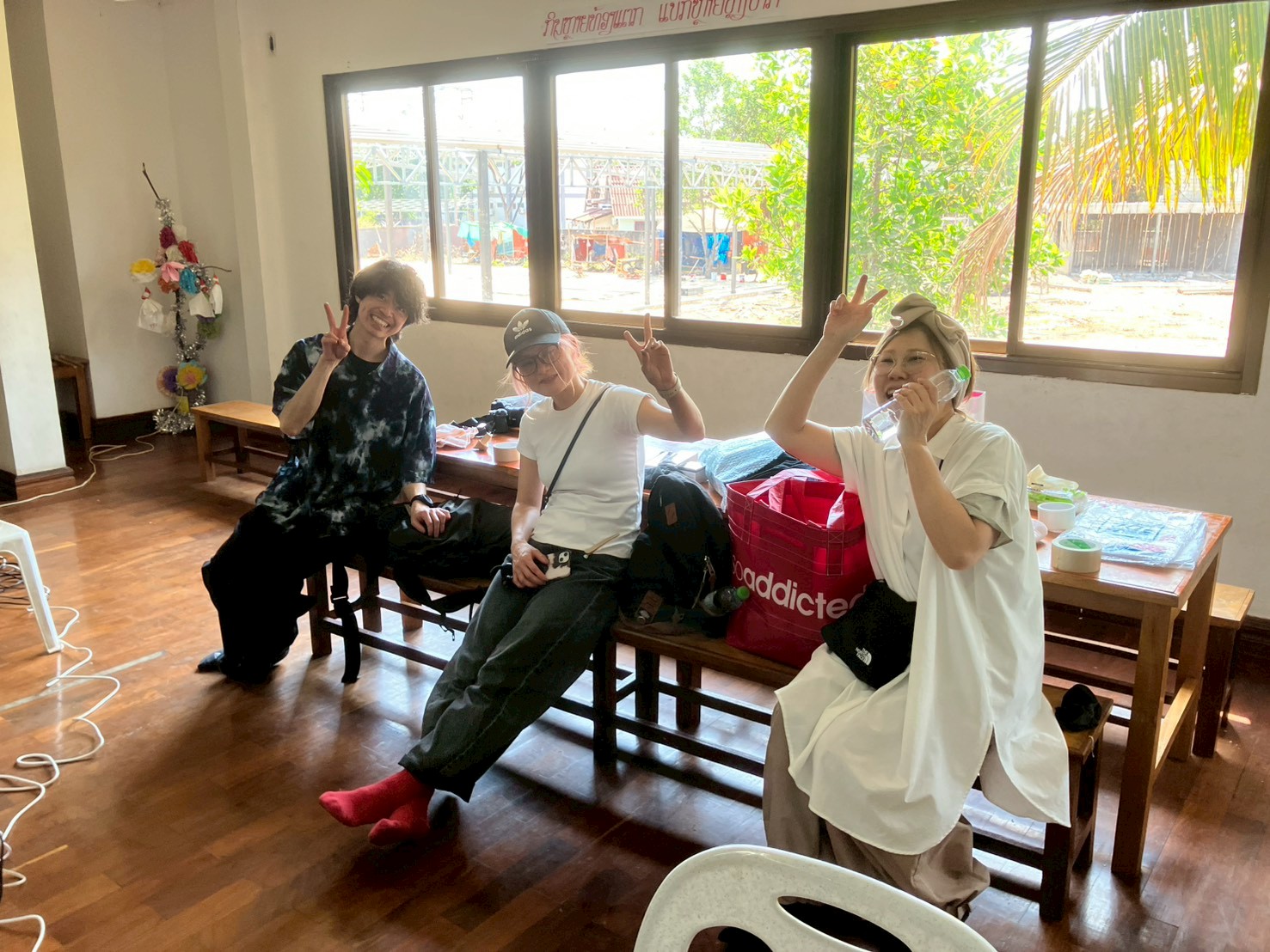 2月のラオスは気温も30度を超えて、暑いのでしっかり休憩をとってから後半に臨みます。