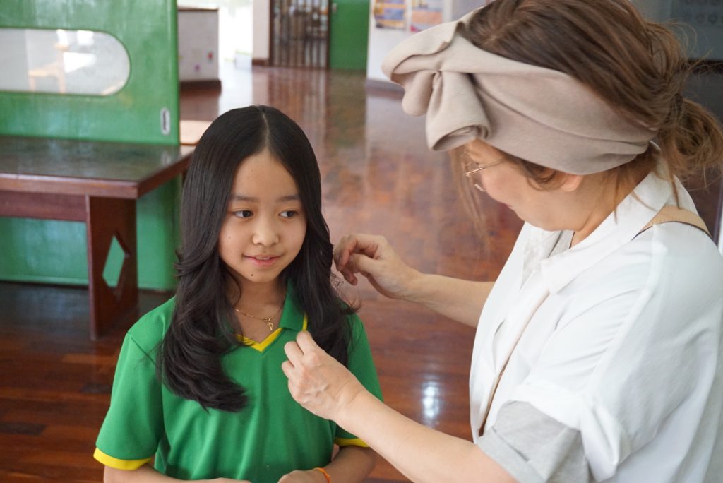 また、先生方も髪を整えた後に何度も手で触れながら「ありがとう」と声をかけてくださり、その喜びがとても伝わってきました。