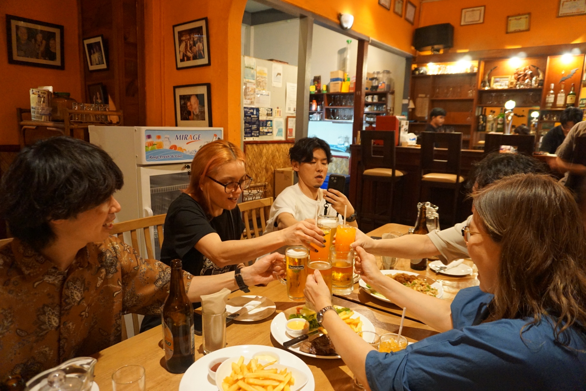夜は集合して夕食へ。