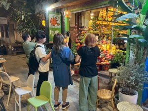 食事後は、隣のフルーツジュースのお店で搾りたてのジュースを購入。