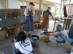 ツアー最終日は、ホアイホン職業訓練センターを訪問し、草木染めと機織りの体験をさせていただきました。