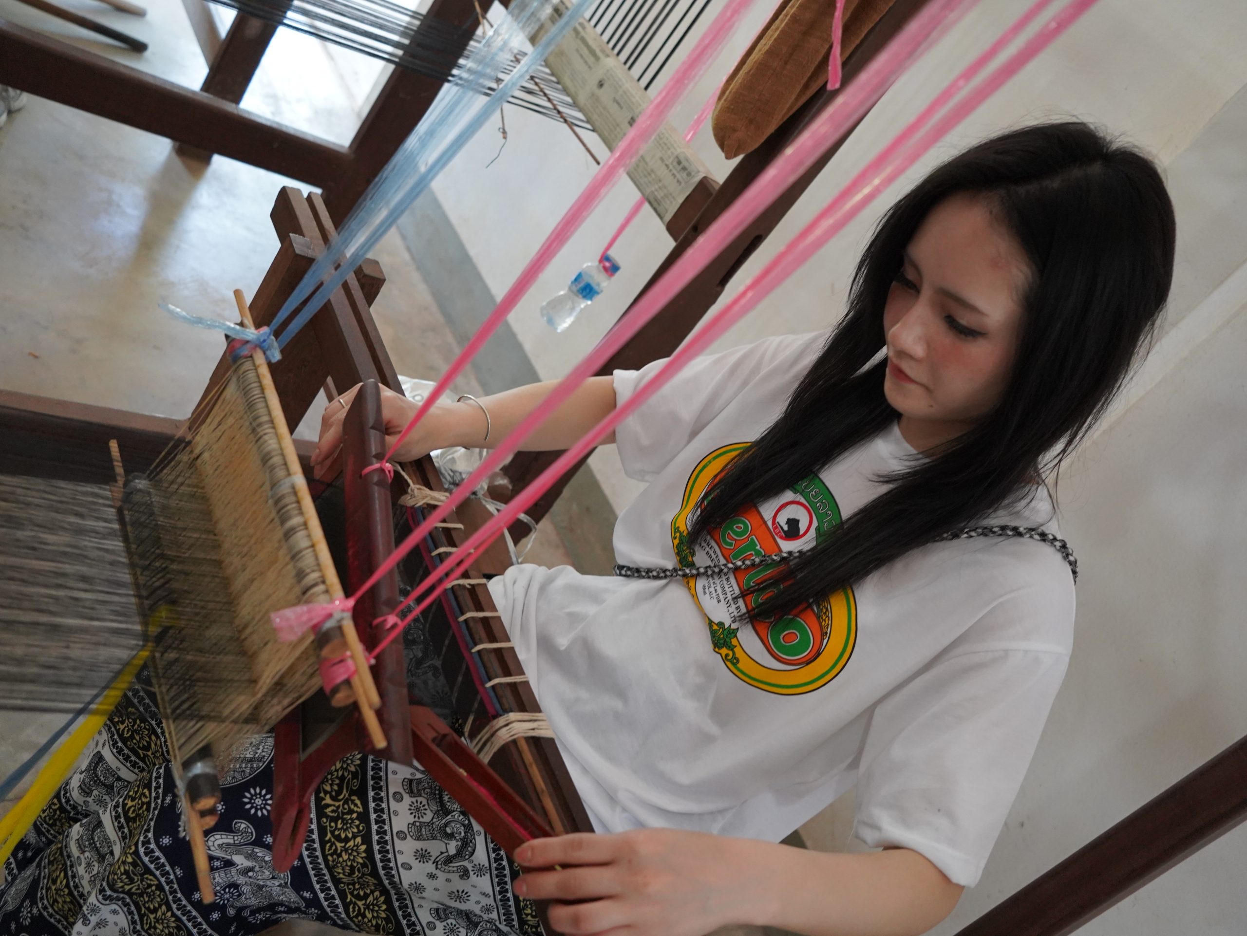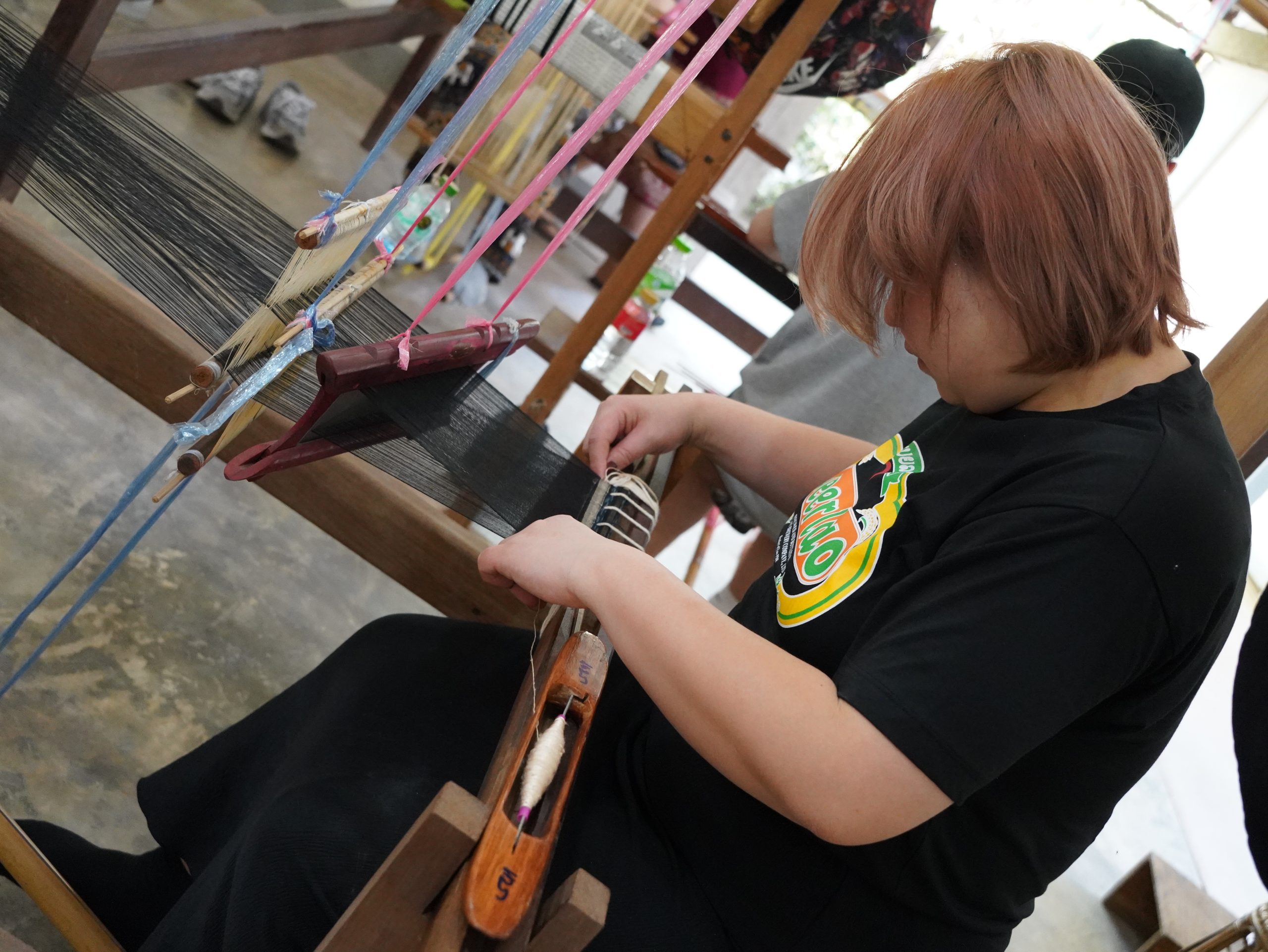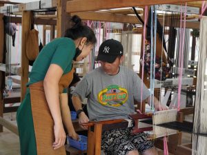 作業を進める中で、ラオスの伝統織物がどれほど手間と技術の積み重ねで作られているのかを実感。