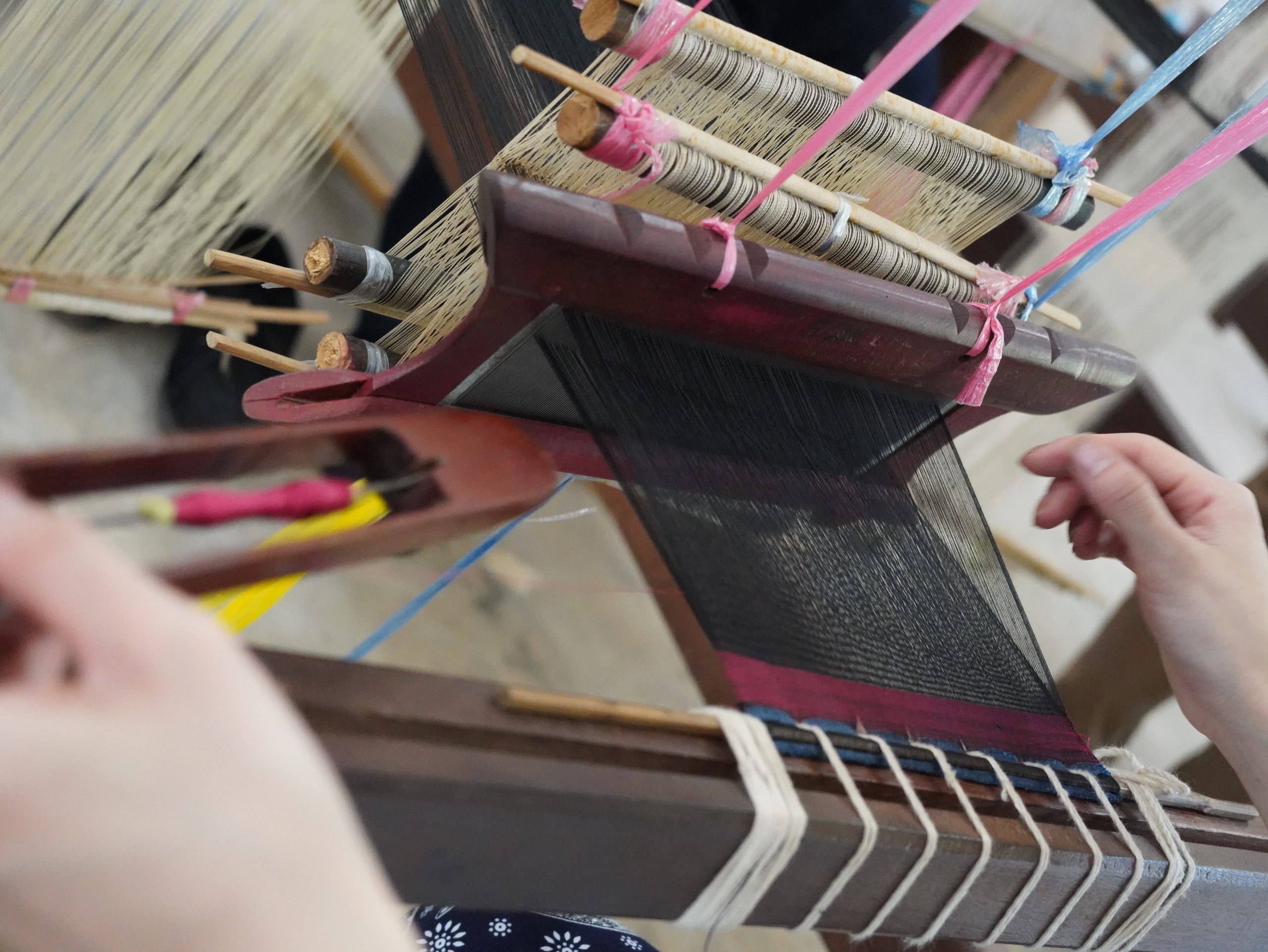 一見するとシンプルに見える織物ですが、実際に体験してみると、その作業はすべて手作業。