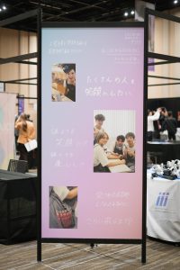 会場の数カ所に掲示された、美容師たちの「美容師を目指した理由」と、美容学生たちの「これからの自分へのメッセージ」。