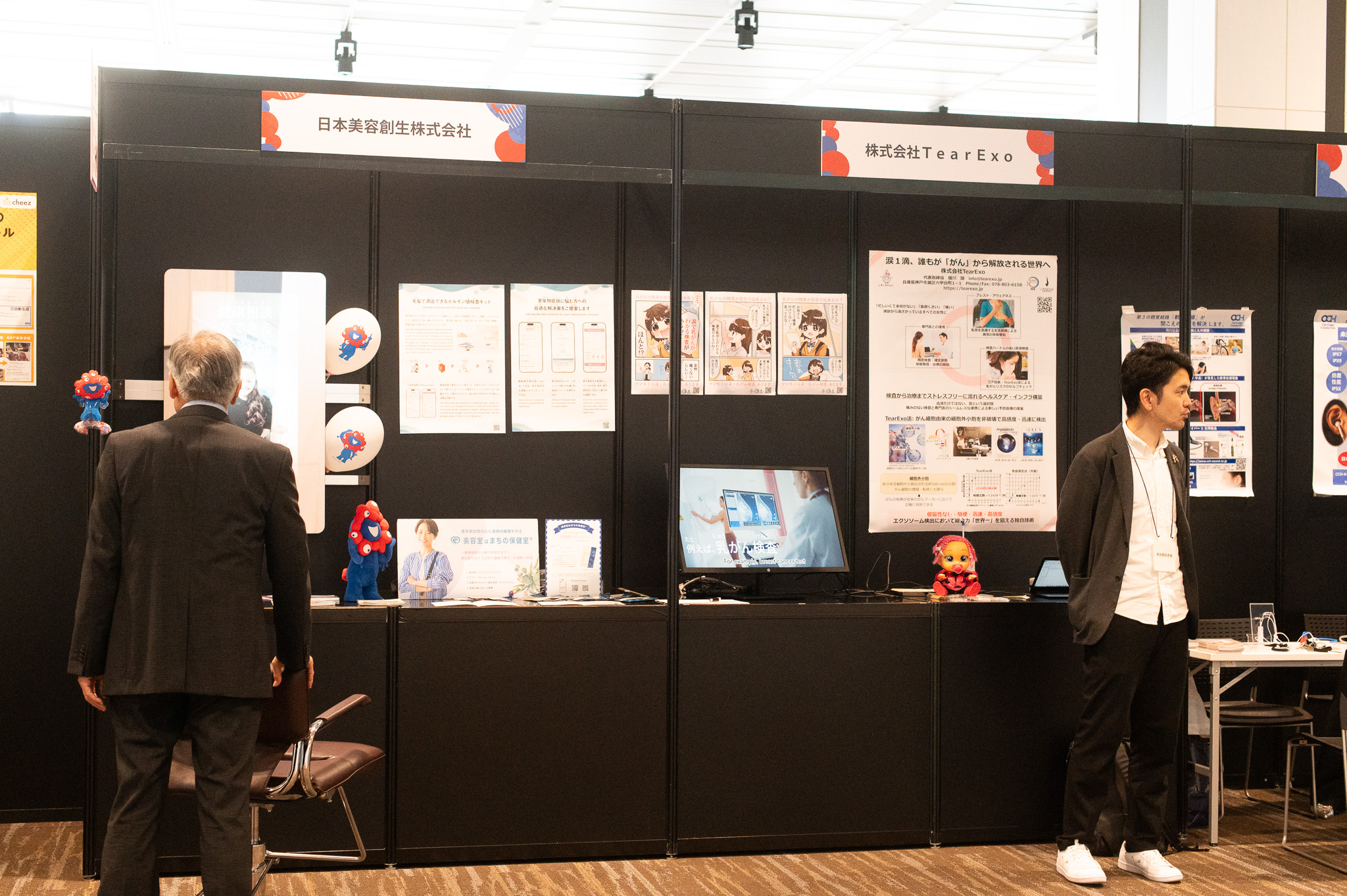 「涙を検体としたがん検査キット」の紹介のほか、第3の聴覚経路「軟骨伝導」を利用したイヤホンや集音器の体験もできるなど、注目を集めました。