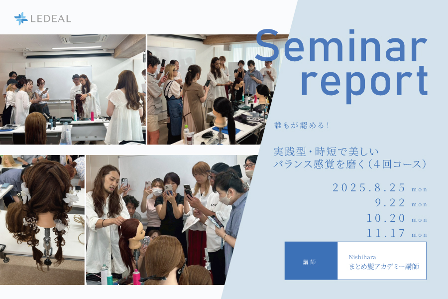 ・カットの仕方からパーマの薬の詳しい説明を聞けてとても有意義なセミナーでした。 まき方もとてもシンプルで早速明日からのサロンワークに活かしていこうと思います。 ありがとうございました。