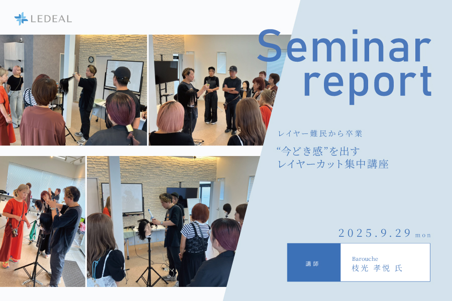 ・レイヤーカットが少し苦手だったのですが今回受けてみて、こういう切り方もあるんだと新しい学びを得ることができました。またサロンワークかモデルさんに実際にカットしてみようと思います。分かりやすいセミナー ありがとうございました。